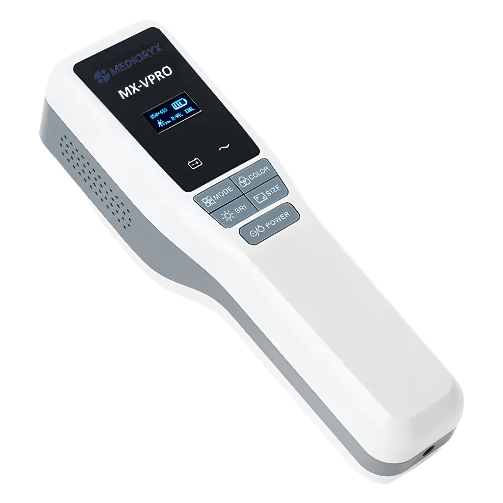 Six selectable projection colors: black and white, green, reverse green, red, purple, reverse purple